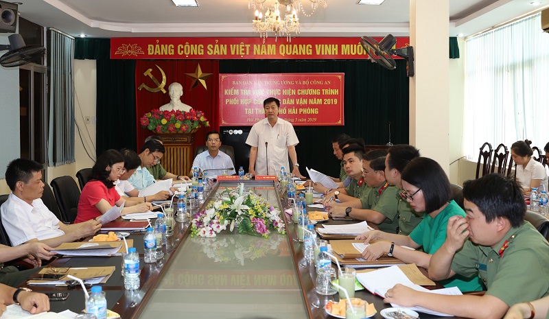 Chiều 20-5, Ban Dân vận Trung ương và Bộ Công an tổ chức đoàn kiểm tra việc thực hiện chương trình phối hợp công tác dân vận năm 2019 tại thành phố Hải Phòng.