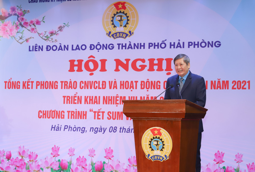 Sáng 8/1, Liên đoàn Lao động thành phố Hải Phòng tổ chức Hội nghị tổng kết phong trào CNVCLĐ và hoạt động công đoàn năm 2021; triển khai nhiệm vụ năm 2022; chương trình “Tết sum vầy”.