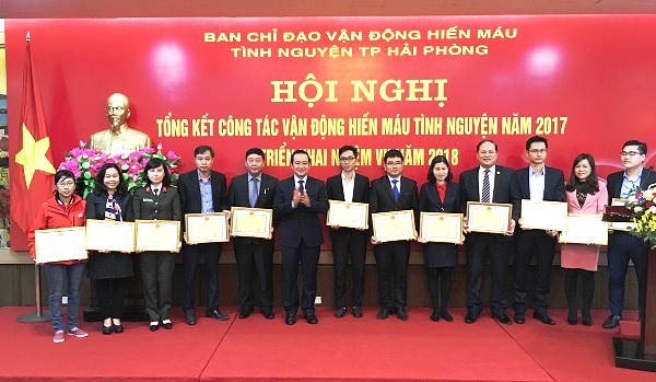 Để động viên, khích lệ tinh thần những người hiến máu tình nguyện, công tác động viên, khen thưởng được Ban Chỉ đạo hiến máu tình nguyện thành phố đặc biệt quan tâm: Giới thiệu 2 cá nhân tham dự tôn vinh 100 người hiến máu Việt Nam năm 2017 và sự kiện toàn cầu “Ngày Quốc tế người hiến máu 14/6”; đề nghị Bộ Y tế tặng bằng khen cho 1 gia đình hiến máu tiêu biểu; đề nghị UBND thành phố khen thưởng 9 tập thể, 10 gia đình và 61 cá nhân tiêu biểu.