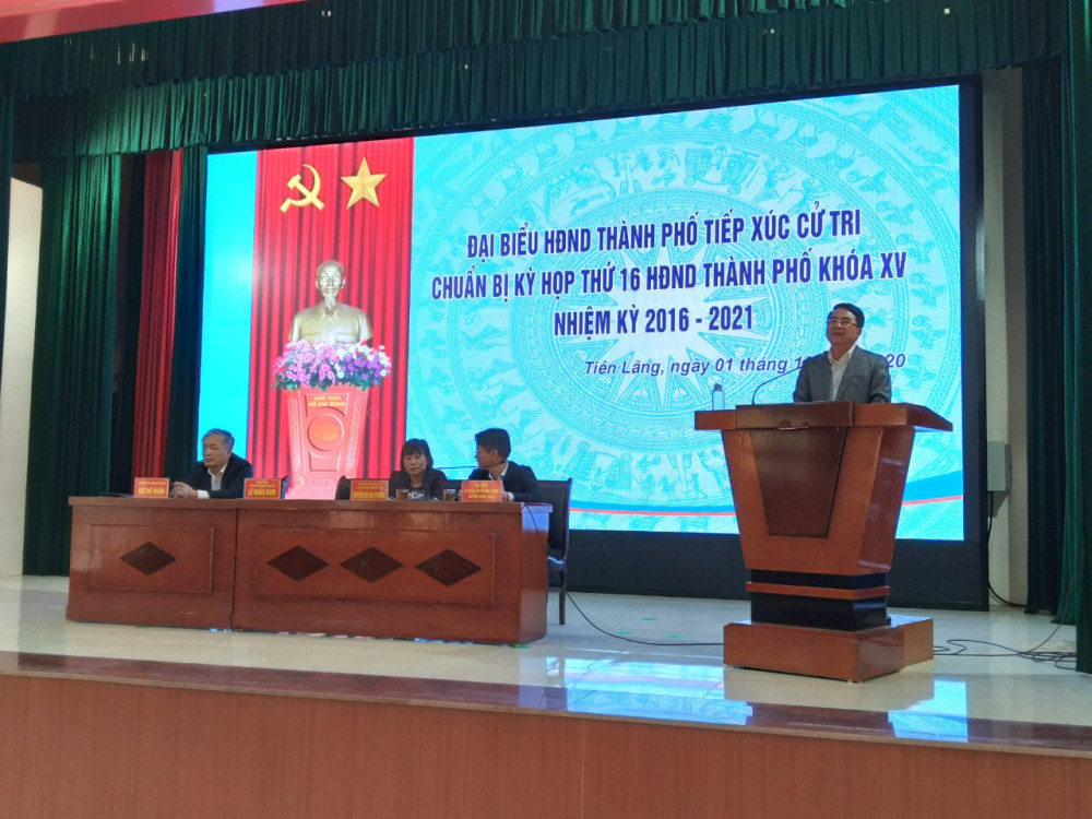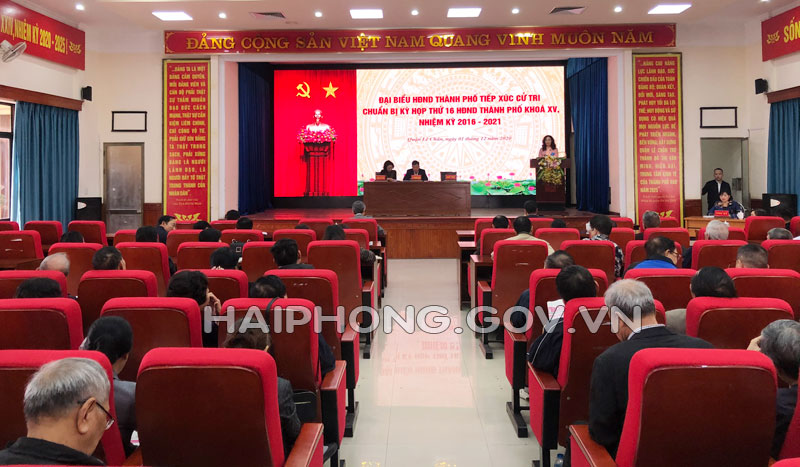 Tại cuộc tiếp xúc, cử tri được thông tin về nội dung cơ bản kỳ họp thứ 16 HĐND thành phố khóa XV; tình hình phát triển kinh tế-xã hội của thành phố. Theo đó, Kỳ họp thứ 16 HĐND thành phố khóa XV dự kiến sẽ diễn ra trong 2 ngày 21 và 22/12/2020. Tại kỳ họp này, HĐND thành phố sẽ xem xét quyết định những nội dung quan trọng gồm: Quyết định nhiệm vụ, giải pháp phát triển kinh tế-xã hội, quốc phòng-an ninh thành phố 5 năm giai đoạn 2021-2025; Quyết định nhiệm vụ, giải pháp phát triển kinh tế-xã hội, quốc phòng-an ninh thành phố năm 2021; Quyết định Kế hoạch tổ chức kỳ họp thường lệ năm 2021 của HĐND thành phố khóa XV (nhiệm kỳ 2016-2021); Phê chuẩn quyết toán ngân sách địa phương năm 2019; Quyết định Kế hoạch tài chính thành phố 5 năm 2021-2025; Quyết định Kế hoạch đầu tư công thành phố năm 2021; Quyết định điều chỉnh chủ trương đầu tư và Quyết định chủ trương đầu tư một số dự án trọng điểm của thành phố trong năm 2021; Quyết định sửa đổi, bổ sung Nghị quyết số 32 năm 2014 của HĐND thành phố về việc phê duyệt quy hoạch giao thông vận tải đường bộ thành phố Hải Phòng đến năm 2020, định hướng đến năm 2030; chất vấn và xem xét trả lời chất vấn và thực hiện một số nội dung quan trọng khác theo luật định…