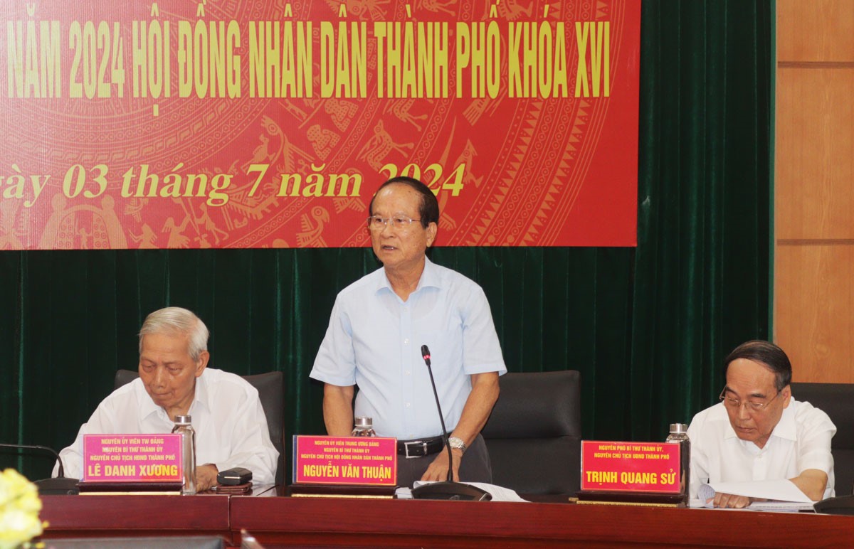 Chủ tịch HĐND thành phố khẳng định, những kết quả đạt được hiện nay của thành phố có sự đóng góp quý báu của các đồng chí nguyên lãnh đạo thành phố, đã thường xuyên quan tâm theo dõi, tham gia ý kiến quan trọng vào các chương trình lớn của thành phố. Đồng thời đề nghị Thường trực HĐND thành phố, UBND thành phố, các Sở, ban, ngành chức năng tiếp thu ý kiến của các đồng chí nguyên lãnh đạo thành phố, tiếp tục chỉnh sửa, hoàn thiện các báo cáo, đề án trước khi trình tại Kỳ họp thường lệ giữa năm 2024 HĐND thành phố khóa XVI.