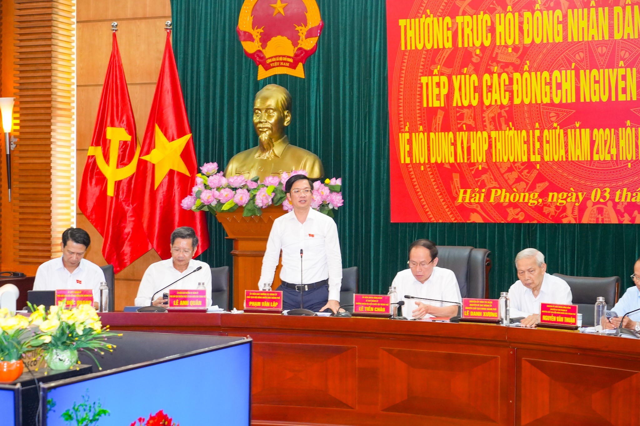 Phát biểu tại cuộc tiếp xúc, Chủ tịch HĐND thành phố Phạm Văn Lập trân trọng cảm ơn và tiếp thu những ý kiến tâm huyết, trách nhiệm, sâu sắc, sát với tình hình hiện nay của các đồng chí nguyên lãnh đạo thành phố. Đồng thời cho biết, từ đầu năm đến nay, HĐND thành phố đã tổ chức 5 kỳ họp, trong đó có 4 kỳ họp chuyên đề để giải quyết những vấn đề cấp bách, đáp ứng yêu cầu thực tiễn phát triển thành phố.
