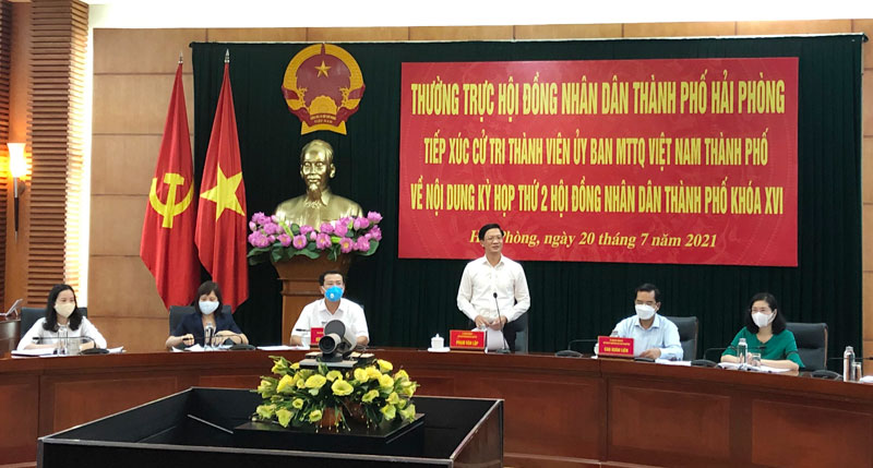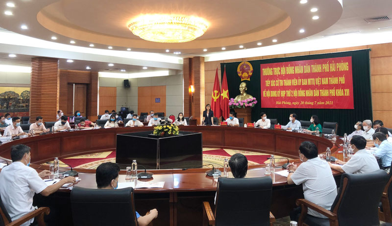 Sáng 20/7, Thường trực HĐND thành phố tổ chức Hội nghị tiếp xúc cử tri thành viên Ủy ban MTTQ Việt Nam thành phố để lấy ý kiến tham gia vào nội dung kỳ họp thứ 2 HĐND thành phố khóa XVI, nhiệm kỳ 2021-2026.