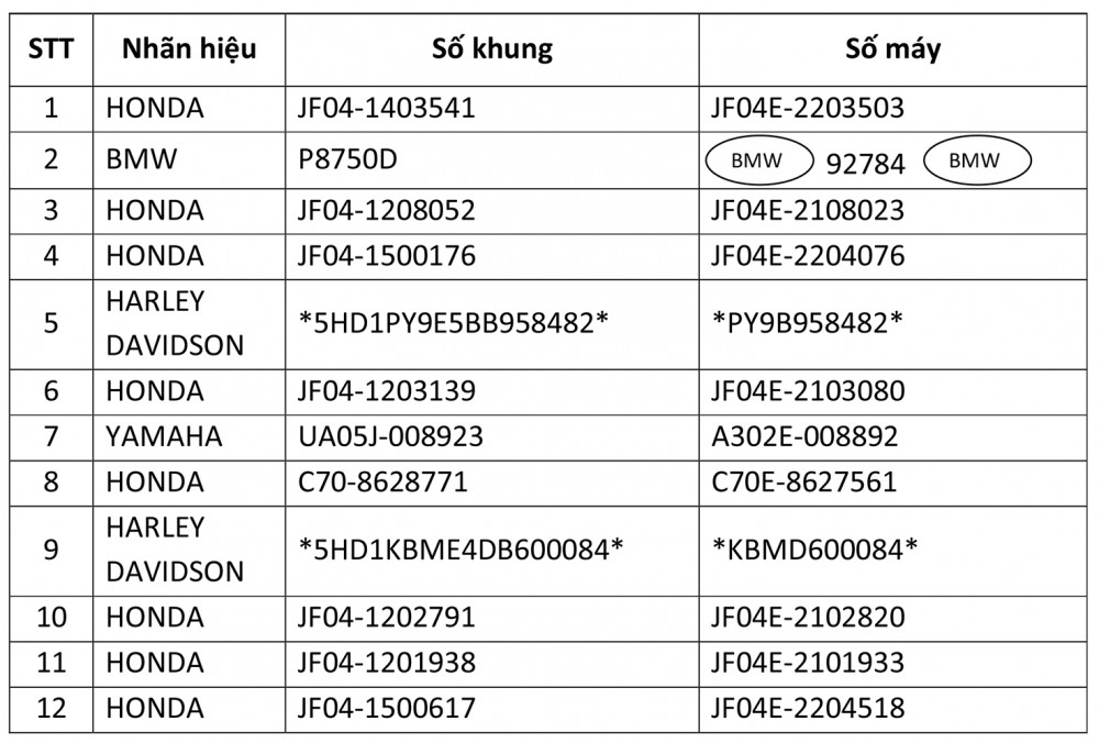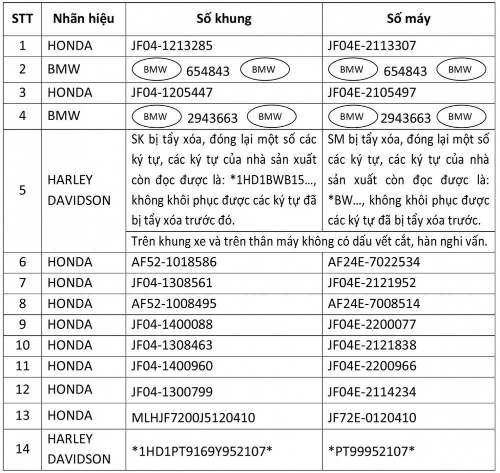 Trong quá trình điều tra vụ án giết người xảy ra ngày 22-2-2019 tại thôn Xuân Cát, X. Đại Thắng, H. Tiên Lãng, TP. Hải Phòng, Cơ quan CSĐT – CATP Hải Phòng tạm giữ xe mô tô nhãn hiệu Trung Quốc màu xanh, BKS 16F8-1630, SK: YX110*20012208* và SM: HD1P50FMH*Y0212261*.