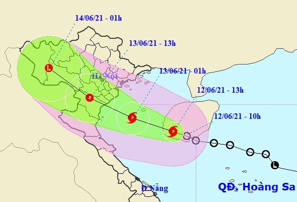 Đến 01 giờ ngày 13/6, vị trí tâm bão ở khoảng 19,4 độ Vĩ Bắc; 107,2 độ Kinh Đông, ngay trên vùng biển khu vực từ Hải Phòng đến Nghệ An. Sức gió mạnh nhất vùng gần tâm bão mạnh cấp 8 (60-75km/giờ), giật cấp 10.