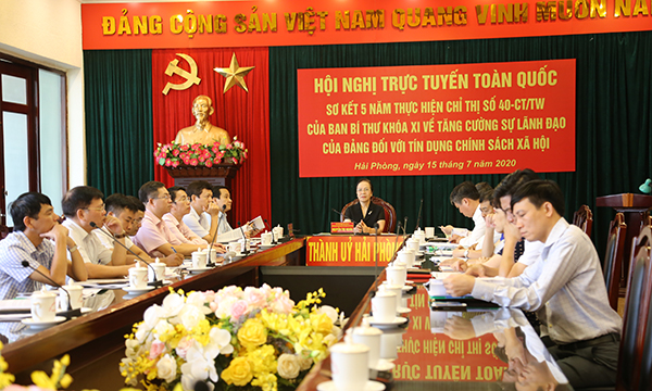 Sáng 15/7, tại điểm cầu thành phố Hải Phòng, đồng chí Nguyễn Thị Nghĩa, Phó Bí thư Thường trực Thành ủy, Trưởng Đoàn đại biểu Quốc hội thành phố chủ trì Hội nghị trực tuyến Sơ kết 5 năm thực hiện Chỉ thị số 40-CT/TW ngày 22/11/2014 của Ban Bí thư Trung ương khóa XI về tăng cường sự lãnh đạo của Đảng đối với tính dụng chính sách.