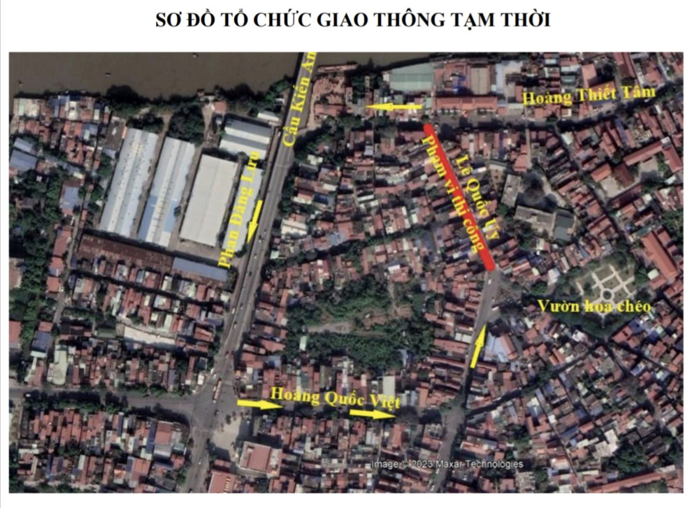 Từ 6 giờ 00 phút ngày 25/8/2023 đến hết ngày 15/9/2023, cấm toàn bộ phương tiện ô tô lưu thông qua đường Lê Quốc Uy đoạn từ đường Hoàng Thiết Tâm đến ngã 3 vườn hoa chéo.
