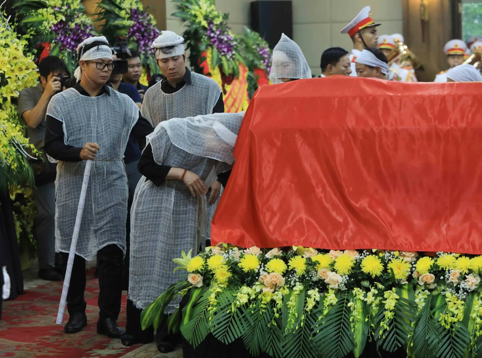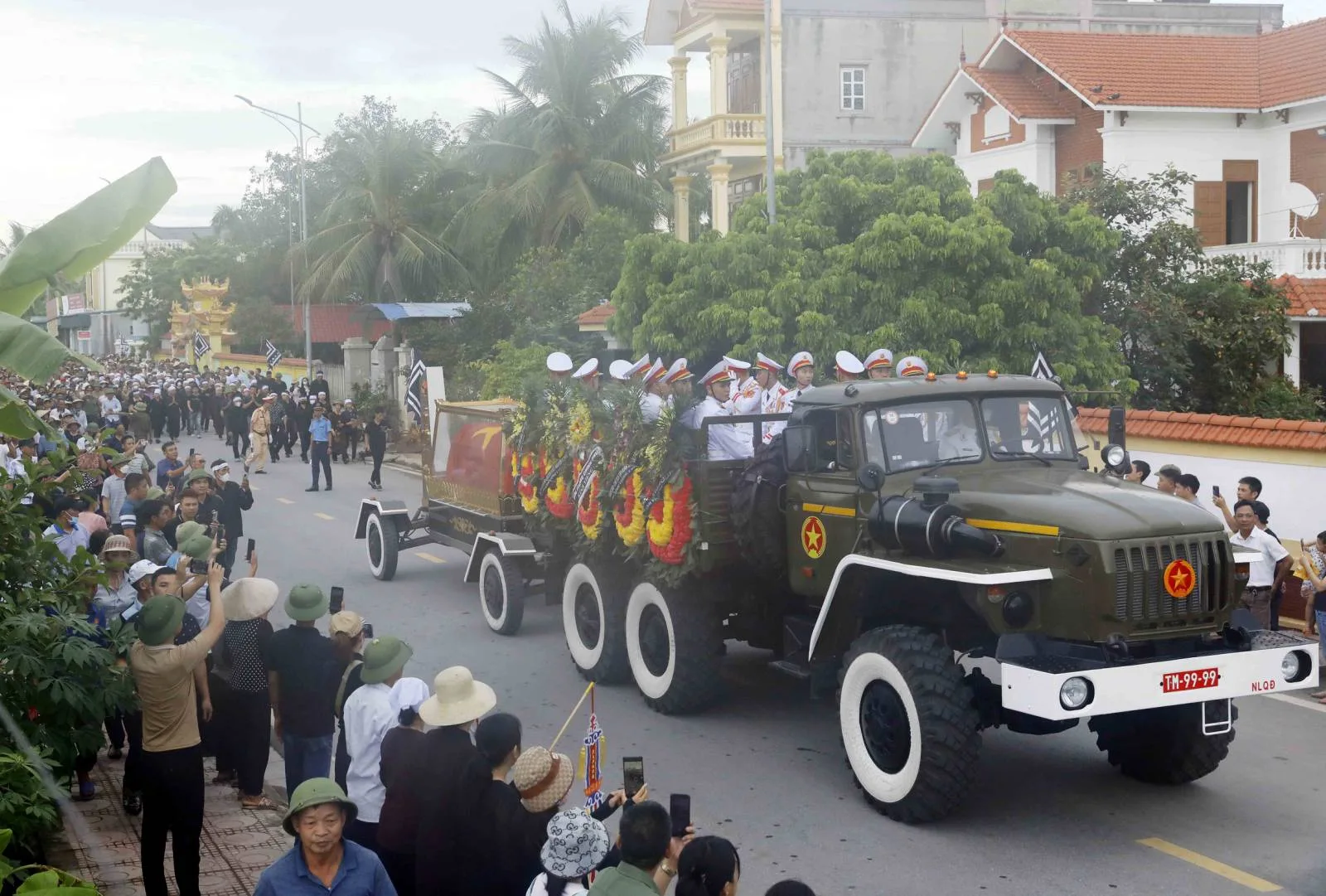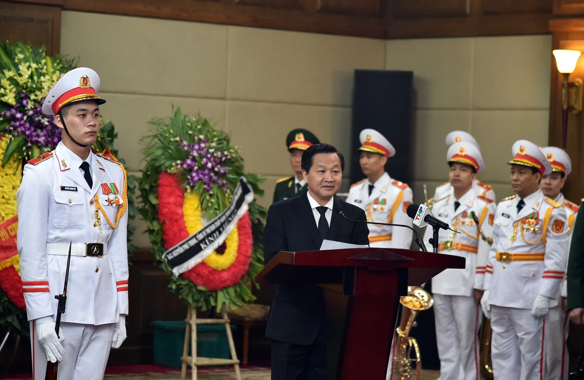 Đồng chí Lê Minh Khái xúc động: “Hôm nay, chúng tôi có mặt tại đây để bày tỏ lòng tiếc thương và tiễn đưa Đồng chí về nơi an nghỉ cuối cùng. Chúng tôi nguyện đoàn kết một lòng, ra sức phấn đấu, tiếp tục đi theo con đường cách mạng mà Đảng, Chủ tịch Hồ Chí Minh và các thế hệ cách mạng đi trước để xây dựng một nước Việt Nam “dân giàu, nước mạnh, dân chủ, công bằng, văn minh“.