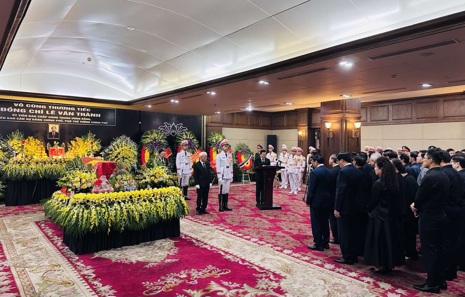 Lễ truy điệu đồng chí Lê Văn Thành, Ủy viên Trung ương Đảng, Ủy viên Ban Cán sự Đảng Chính phủ, Phó Thủ tướng Chính phủ được tổ chức trọng thể vào hồi 7 giờ 00 phút, thứ Bảy, ngày 26/8/2023.