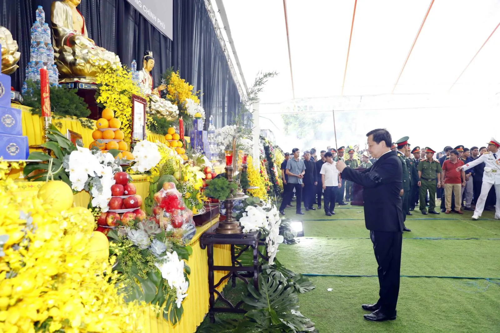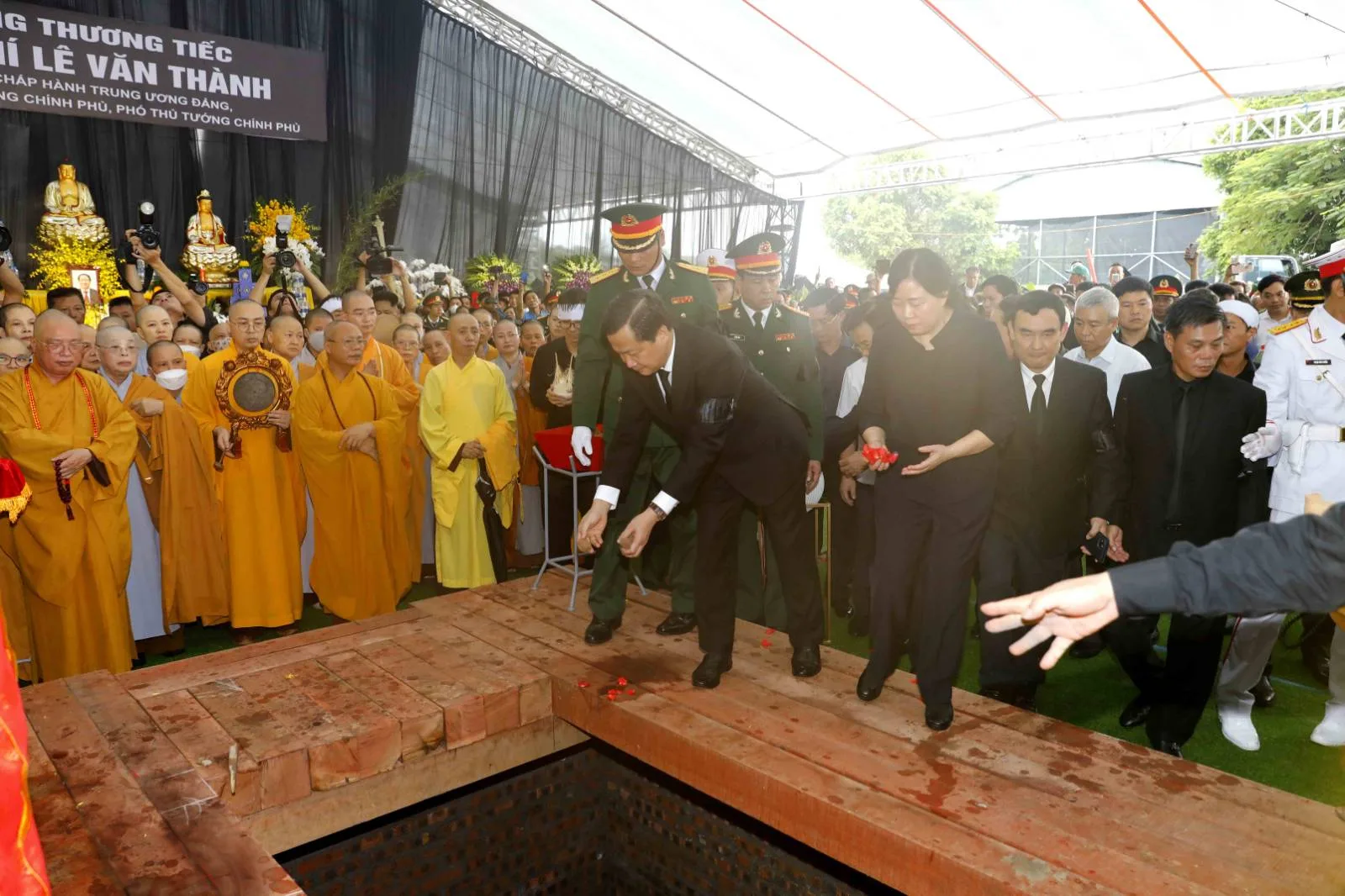 Trong tiếng nhạc hồn tử sĩ trầm buồn, đại diện gia quyến đồng chí Lê Văn Thành, các đồng chí lãnh đạo, nguyên lãnh đạo Đảng, Nhà nước, Ủy ban Trung ương Mặt trận Tổ quốc Việt Nam và đại diện lãnh đạo các bộ, cơ quan, ban, ngành, đoàn thể Trung ương và địa phương đi vòng quanh linh cữu vĩnh biệt đồng chí Lê Văn Thành.