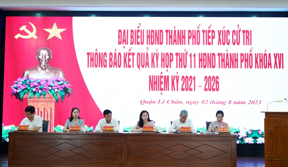 Tại buổi tiếp xúc, cử tri quận Lê Chân được thông báo những nội dung chủ yếu của kỳ họp thứ 11, HĐND thành phố; các Nghị quyết được thông qua tại kỳ họp. Theo đó, kỳ họp đã xem xét, thông qua 23 Nghị quyết quan trọng, có ý nghĩa thiết thực đến sự phát triển kinh tế-xã hội của thành phố.