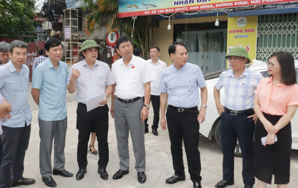 Tổ Đại biểu số 5 HĐND thành phố đã khảo sát thực tế tại nhánh tuyến mương Tây Nam thuộc địa bàn phường Vĩnh Niệm, quận Lê Chân gây ô nhiễm môi trường; đường Mạc Quyết, phường Anh Dũng, quận Dương Kinh; tuyến đường 362, đoạn từ ngã 3 giao với đường Phạm Văn Đồng, phường Hòa Nghĩa đến địa phận huyện Kiến Thụy (quận Dương Kinh) chưa lắp đặt hệ thống điện chiếu sáng, thoát nước đồng bộ.