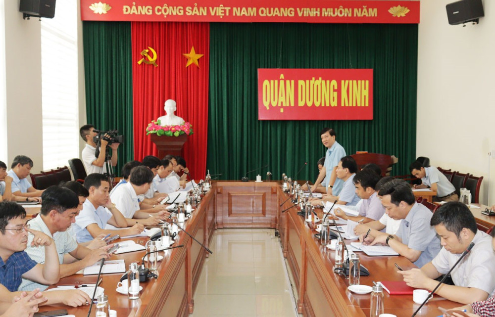 Sáng 30/6, Tổ Đại biểu số 5 HĐND thành phố đi khảo sát, giám sát việc giải quyết kiến nghị của cử tri tại quận Lê Chân, quận Dương Kinh. Đồng chí Đào Văn Ninh, Ủy viên Thành ủy, Bí thư Quận ủy Dương Kinh, Tổ trưởng Tổ đại biểu chủ trì cuộc làm việc.