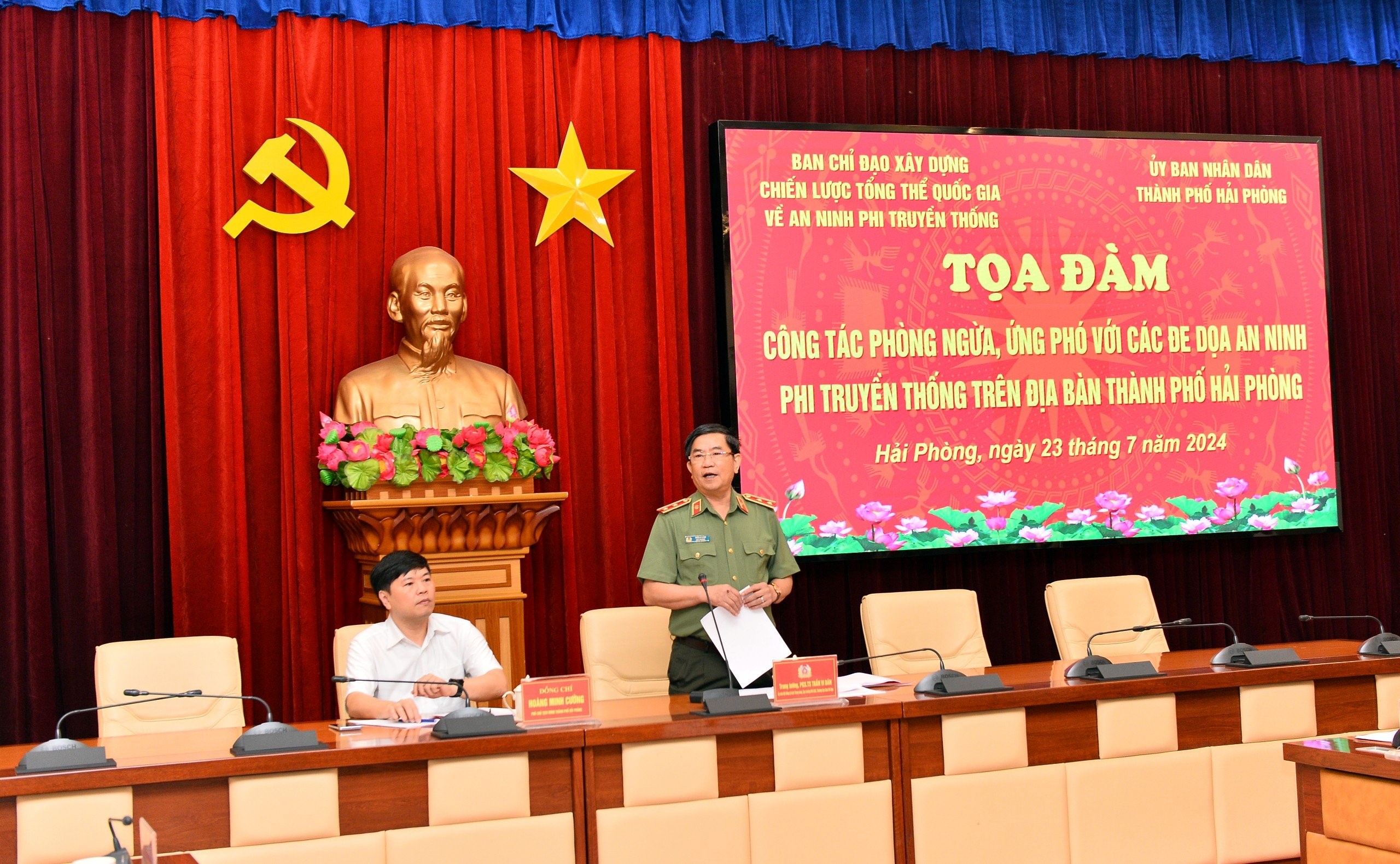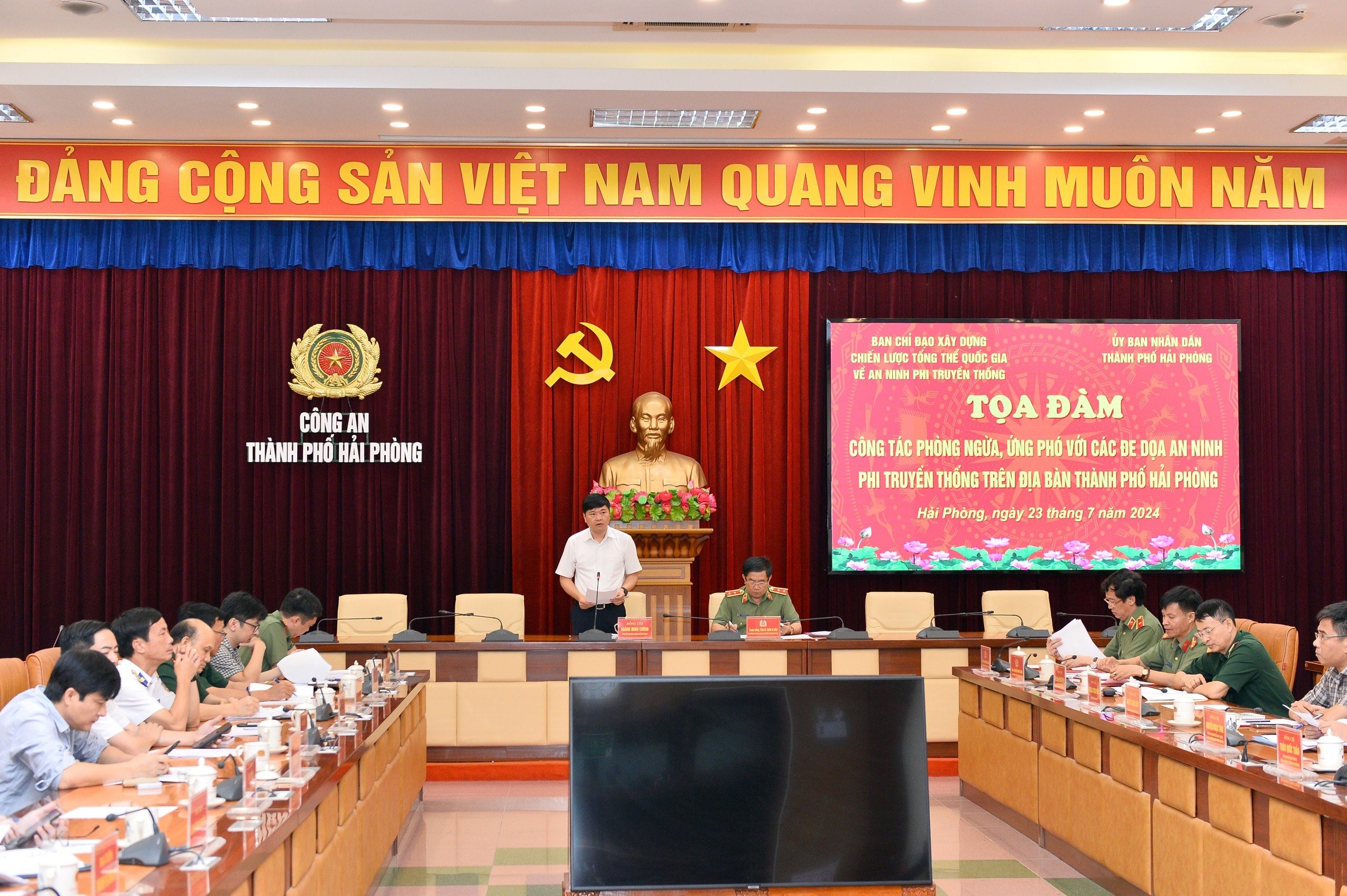 Phát biểu tại Tọa đàm, lãnh đạo Cục Khoa học, chiến lược và lịch sử Bộ Công an và UBND thành phố nhận định: Các địa phương trong toàn quốc nói chung và Hải Phòng nói riêng đang chịu tác động lớn từ các đe dọa an ninh phi truyền thống trên các lĩnh vực kinh tế, chính trị, văn hóa, xã hội, an ninh, quốc phòng. Tại chương trình Tọa đàm, những ý kiến trao đổi, đóng góp của các thành viên trong Đoàn công tác của Ban Chỉ đạo xây dựng Chiến lược tổng thể quốc gia về an ninh phi truyền thống là cơ sở để lãnh đạo thành phố định hướng các giải pháp, nhiệm vụ trọng tâm, nhằm nâng cao hơn nữa hiệu quả công tác phòng ngừa, ứng phó với các đe dọa an ninh phi truyền thống, đáp ứng yêu cầu phát triển kinh tế, xã hội thành phố trong giai đoạn phát triển, hội nhập.