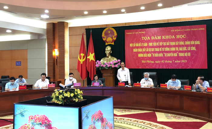 Sáng 2/7, đồng chí Tạ Ngọc Tấn, Phó Chủ tịch Hội đồng Lý luận Trung ương và đồng chí Đỗ Mạnh Hiến, Phó Bí thư Thường trực Thành ủy đồng chủ trì Tọa đàm khoa học “Một số vấn đề lý luận-thực tiễn về tiếp tục đẩy mạnh xây dựng, chỉnh đốn Đảng, ngăn chặn, đẩy lùi sự suy thoái về tư tưởng chính trị, đạo đức, lối sống, những biểu hiện “tự diễn biến, tự chuyển hóa” trong nội bộ”.