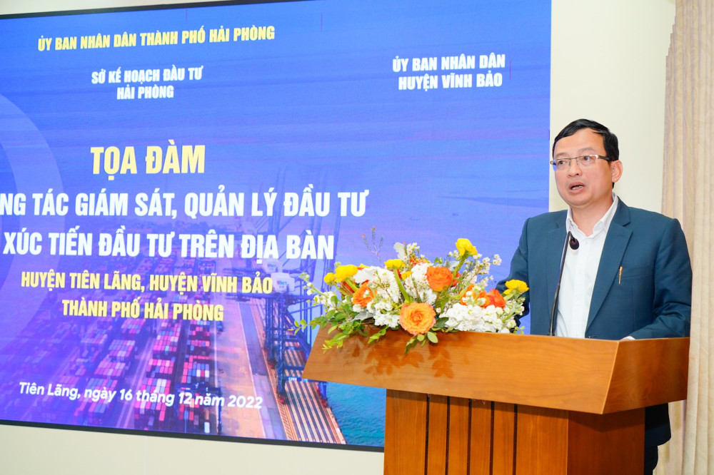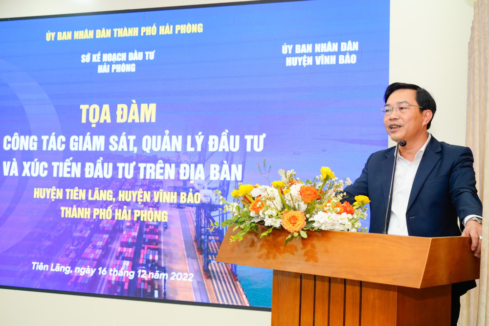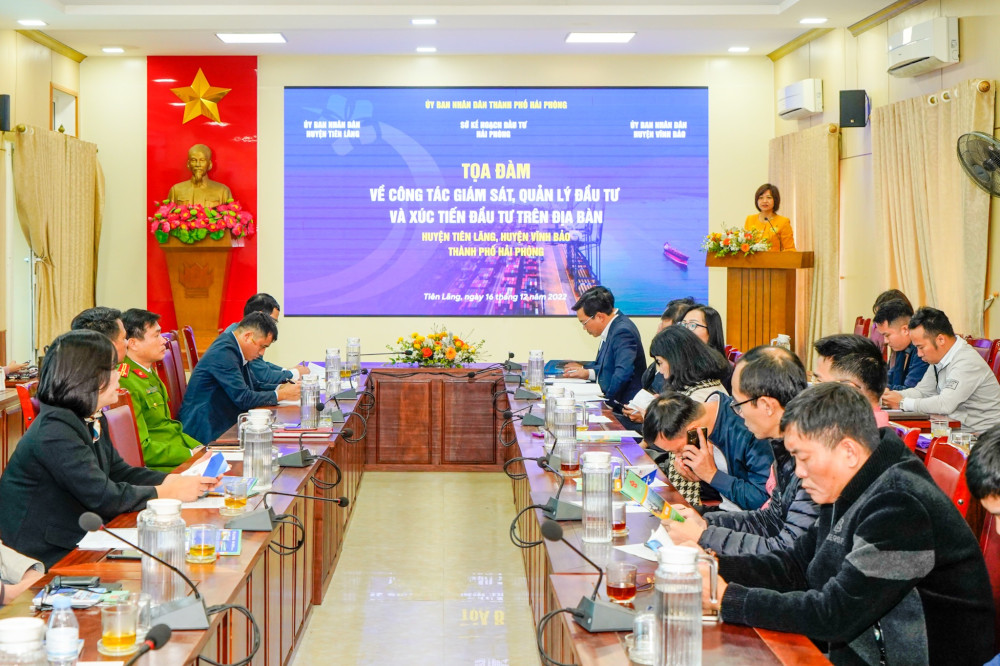 Nhằm thúc đẩy thu hút các dự án đầu tư sản xuất công nghiệp có chất lượng cao gắn với phát triển vùng nguyên liệu, sử dụng nguồn nhân lực tại địa phương, sáng 16/12, Sở Kế hoạch đầu tư phối hợp với UBND hai huyện Tiên Lãng, Vĩnh Bảo tổ chức hội nghị tọa đàm về công tác giám sát, quản lý đầu tư và xúc tiến đầu tư trên địa bàn huyện Tiên Lãng, huyện Vĩnh Bảo, thành phố Hải Phòng.