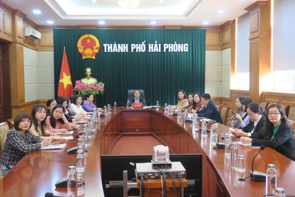 Tại điểm cầu thành phố Hải Phòng, đồng chí Đào Trọng Đức, Ủy viên Ban Thường vụ Thành ủy, Trưởng Ban Tổ chức Thành ủy; cùng các đồng chí lãnh đạo, cán bộ Hội LHPN thành phố, Sở Nội vụ tham dự Hội nghị.