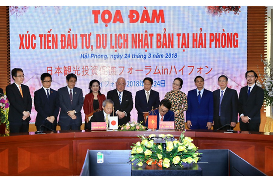 Trước sự chứng kiến của các đồng chí lãnh đạo thành phố, VCCI và khách mời Nhật Bản, Trung tâm Xúc tiến đầu tư, thương mại và du lịch Hải Phòng ký biên bản ghi nhớ về hợp tác đầu tư, phát triển du lịch với Công ty Tokyo LLC về cam kết đầu tư thực hiện Dự án Khu biệt thự nghỉ dưỡng cao cấp thuộc phạm vi quy hoạch quần thể sân golf Hải Phòng Sakura Club tại huyện An Lão, Hải Phòng; với Công ty Toyota Hiroshima về hợp tác phát triển ngành công nghiệp ô tô tại Hải Phòng; với Công ty Fukuyama về việc cam kết đầu tư dự án xây dựng hệ thống logistics tại thành phố Hải Phòng; với Công ty du lịch JV tour về phối hợp để sớm triển khai cung cấp các dịch vụ du lịch cho khách Việt Nam sang Nhật Bản; với Công ty du lịch Ntour về việc triển khai cung cấp các dịch vụ du lịch cho khách Việt Nam sang Nhật Bản và khách Nhật Bản sang Việt Nam; với Công ty Aqua Igunis về việc xây dựng resort tại Hải Phòng và Việt Nam; với Công ty Nihon Seikagaku Kenkyujo về đào tạo và cung ứng điều dưỡng viên…