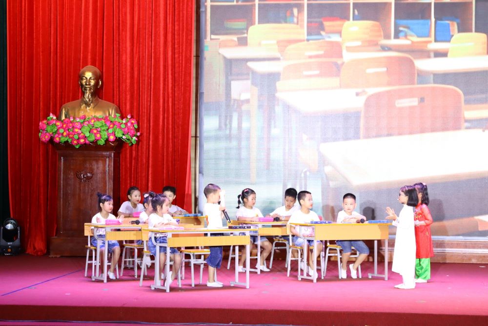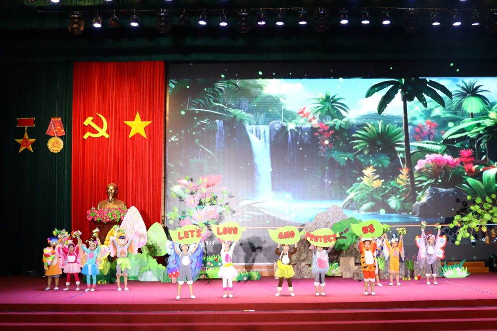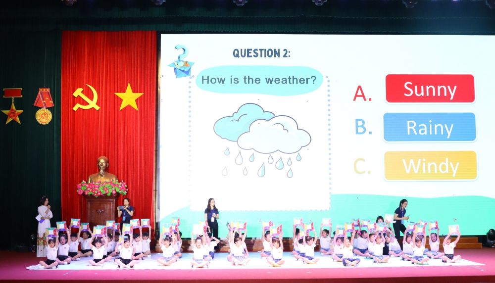 Ngày hội tiếng Anh là sân chơi bổ ích, rèn khả năng ghi nhớ, giúp trẻ mạnh dạn tự tin trong việc sử dụng vốn ngoại ngữ đã học để tương tác, giao tiếp cùng bạn bè, thầy cô.