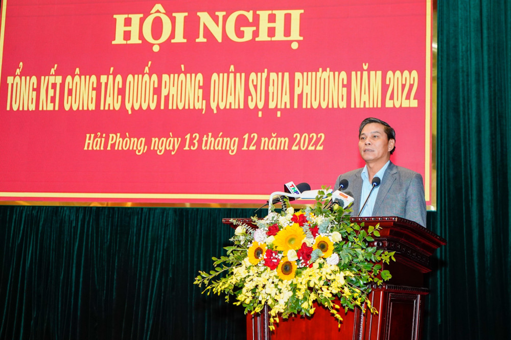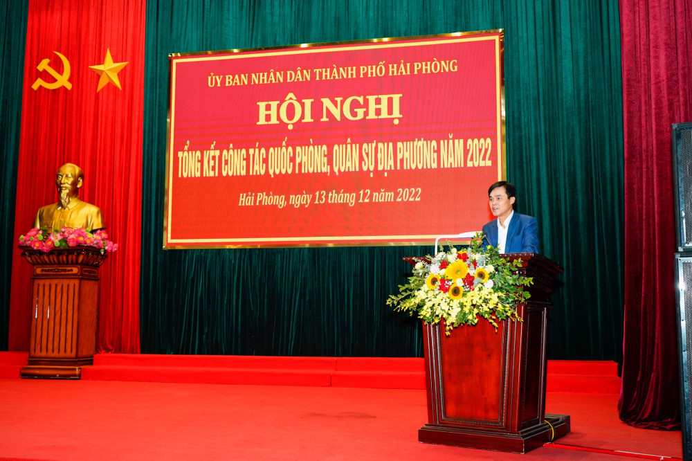 Chủ tịch UBND thành phố Nguyễn Văn Tùng ghi nhận kết quả nối bật của công tác quân sự, quốc phòng địa phương của thành phố năm 2022, nhất là việc kết hợp tốt giữa phát triển kinh tế-xã hội với tăng cường củng cố tiềm lực quốc phòng. Năm 2023, Chủ tịch UBND thành phố đề nghị các Sở, ban, ngành, địa phương tập trunghỉ đạo công tác tuyển quân, hoàn thành 100% chỉ tiêu giao quân năm 2023, bảo đảm chất lượng, hạn chế bù đổi.