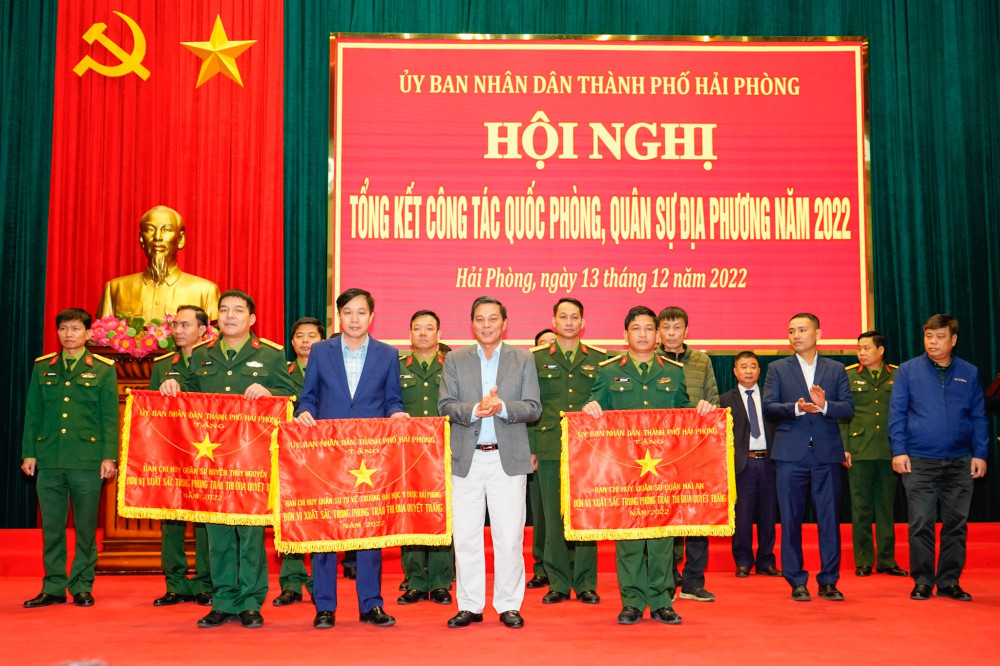 Tập trung đầu tư xây dựng các công trình phục vụ nhiệm vụ quốc phòng an ninh.Yêu cầu các quận, huyện đẩy nhanh tiến độ xây dựng các công trình quốc phòng trong khu vực phòng thủ quận, huyện hoàn thành trong năm 2023, đặc biệt là 03 địa phương Ngô Quyền, Hồng Bàng, An Dương đến nay triển khai còn chậm.Khẩn trương hoàn thành thủ tục mở rộng, điều chỉnh Dự án Căn cứ hậu phương số 1 tại huyện An Lão để Ủy ban nhân dân thành phố trình Hội đồng nhân dân thành phố trong kỳ họp tháng 3/2022.Khẩn trương hoàn thành Dự án xây dựng nơi neo đậu tàu thuyền và đóng quân của Hải đội dân quân thường trực theo Đề án của Bộ Quốc phòng, trình Ủy ban nhân dân thành phố trong tháng 3/2022 để trình Hội đồng nhân dân thành phố trong kỳ họp tháng 6/2022. Đẩy nhanh tiến độ triển khai đầu tư xây dựng Căn cứ hậu phương số 2 tại huyện Thủy Nguyên theo chỉ đạo của Ủy ban nhân dân thành phố.Khẩn trương báo cáo, xin ý kiến Bộ Quốc phòng, Bộ Tư lệnh Quân khu 3 để sớm triển khai xây dựng Sở Chỉ huy Bộ Chỉ huy Quân sự thành phố tại khu đô thị Bắc sông Cấm.