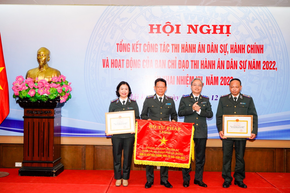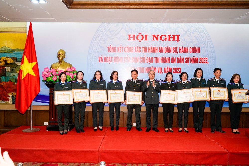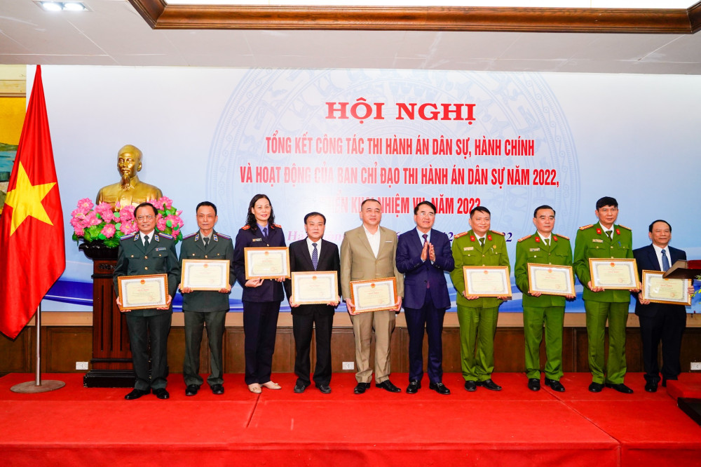 Nhân dịp này, 01 tập thể được Bộ trưởng Bộ Tư pháp tặng Cờ thi đua; 02 tập thể và 10 cá nhân có thành tích xuất sắc trong công tác thi hành án dân sự năm 2022 được tặng Bằng khen của Bộ trưởng Bộ Tư pháp; 05 tập thể và 05 cá nhân có thành tích xuất sắc trong công tác thi hành án dân sự năm 2022 được tặng Bằng khen của Chủ tịch UBND thành phố