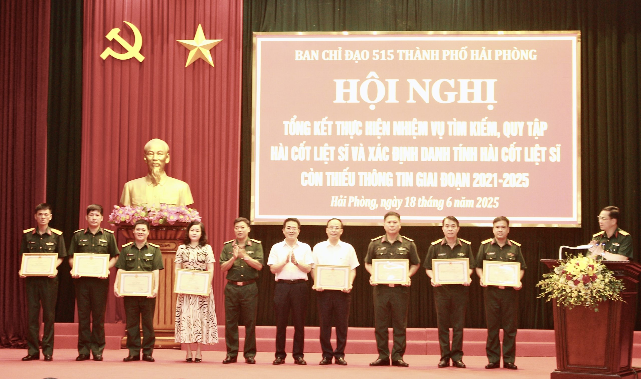 Chiều 18/6, tại Bộ Chỉ huy Quân sự thành phố, Ban Chỉ đạo 515 thành phố Hải Phòng tổ chức Hội nghị tổng kết nhiệm vụ tìm kiếm, quy tập hài cốt liệt sĩ và xác định danh tính hài cốt liệt sĩ còn thiếu thông tin giai đoạn 2021–2025.