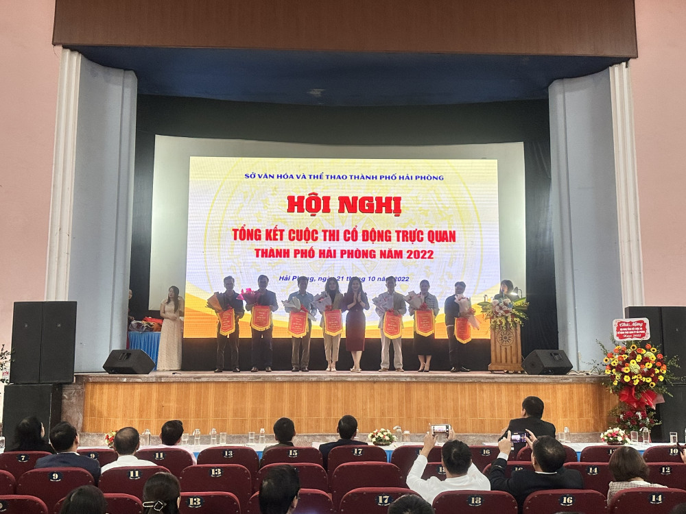 Ghi nhận những thành tích đạt được, tại Hội nghị, Sở Văn hóa và Thể thao trao tặng Cờ cho 15 đơn vị; trao tặng giải Xuất sắc cho 13 đơn vị, giải Nhất cho 2 đơn vị tham gia Cuộc thi; Sở Văn hóa và Thể thao tặng tưởng cho Trung tâm Thông tin, Triển lãm và Điện ảnh do có thành tích tổ chức thành công Cuộc thi Cổ động trực quan thành phố Hải Phòng năm 2022.