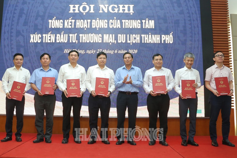 Tại hội nghị công bố các quyết định của Chủ tịch UBND thành phố về công tác cán bộ. Theo đó, UBND thành phố quyết định tiếp nhận, điều động đồng chí Lê Trí Vũ, Giám đốc Trung tâm Xúc tiến Đầu tư giữ chức Phó trưởng Ban Ban Quản lý Khu Kinh tế Hải Phòng, thời hạn 5 năm kể từ ngày 1-7-2020; tiếp nhận, điều động, bổ nhiệm đồng chí Phạm Tiến Dũng, Phó giám đốc Trung tâm Xúc tiến đầu tư giữ chức vụ Phó giám đốc Sở Tài chính, thời hạn 5 năm kể từ ngày 1-7-2020. Công bố các quyết định cho thôi kiêm giữ chức Phó giám đốc Trung tâm Xúc tiến đầu tư, thôi làm nhiệm vụ theo chế độ biệt phái tại Trung tâm kể từ ngày 1-7-2020 đối với các đồng chí: Nguyễn Hoàng Linh, Phó giám đốc Sở Xây dựng; Trần Thanh Long, Phó giám đốc Sở Tài chính; Bùi Tiến Phong, Phó giám đốc Sở Kế hoạch-Đầu tư và Phạm Văn Thuấn, Phó giám đốc Sở Tài nguyên-Môi trường. Quyết định điều động 24 công chức, viên chức tại Trung tâm Xúc tiến đầu tư về Ban Quản lý Khu Kinh tế Hải Phòng và các sở, ngành, địa phương.