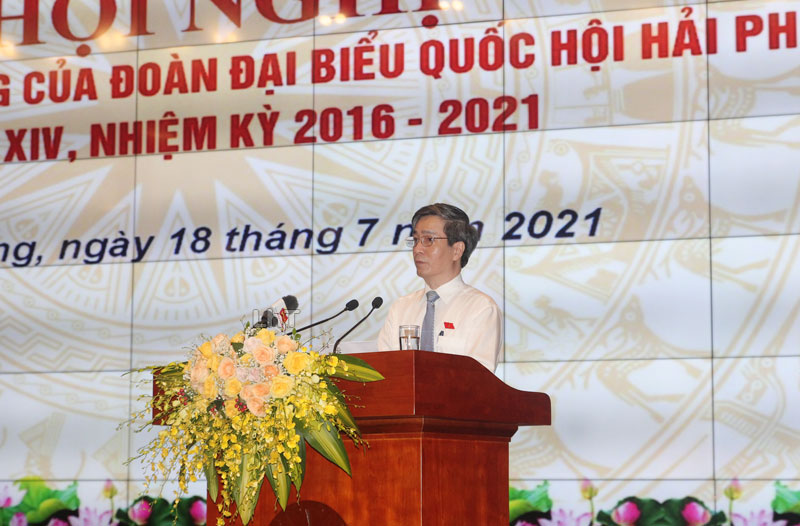 Phát biểu tại hội nghị, đồng chí Trần Lưu Quang, Bí thư Thành ủy khẳng định: Đoàn đại biểu Quốc hội thành phố Hải Phòng khóa XIV đã có những đóng góp tích cực, hiệu quả rõ nét, đáng ghi nhận trong các hoạt động nghị trường, giám sát và tham gia xây dựng chính sách pháp luật. Trong đó, Đoàn đại biểu Quốc hội thành phố khóa XIV tích cực tham gia đề xuất, kiến nghị về cơ chế, chính sách đặc thù với thành phố, kết quả là Nghị định số 89 năm 2017 của Chính phủ, tạo điều kiện để thành phố có thêm nguồn lực phát triển mạnh mẽ. Bên cạnh đó, các đại biểu Quốc hội thành phố khóa XIV thực sự là người đại diện xứng đáng của cử tri và Nhân dân thành phố.