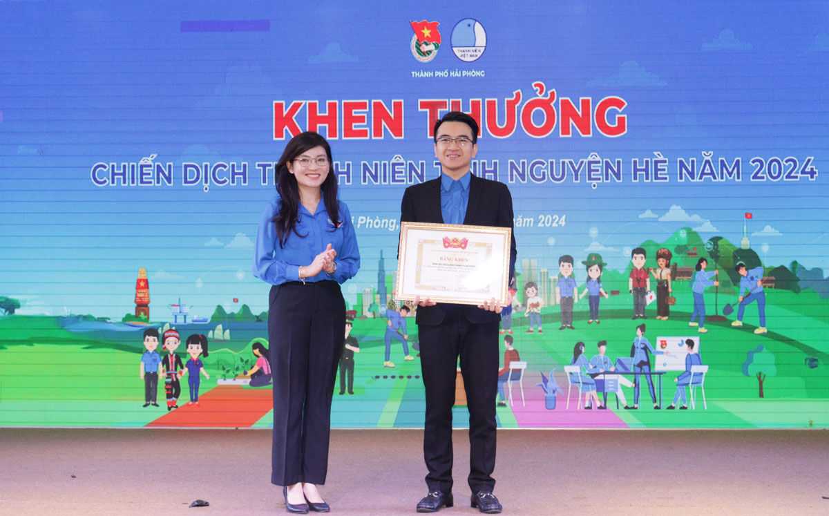 Sáng 5/11, Thành đoàn Hải Phòng tổ chức chương trình tổng kết hoạt động Hè; chiến dịch Thanh niên tình nguyện hè năm 2024; biểu dương Giải thưởng “Nhà Giáo trẻ tiêu biểu” cấp thành phố năm học 2023-2024; phát động Cuộc thi sáng tạo thanh thiếu niên, nhi đồng thành phố Hải Phòng năm 2024-2025 và trao Giải Hội thi Olympic tiếng Anh học sinh, sinh viên cấp thành phố lần thứ VI năm 2024.