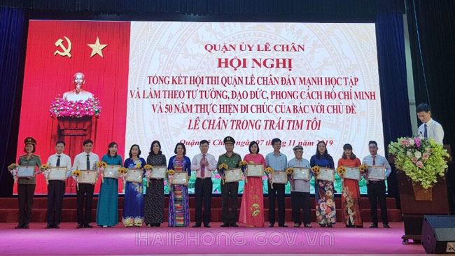 Nhân dịp này, Quận ủy Lê Chân biểu dương khen thưởng 26 tập thể, 30 cá nhân có thành tích xuất sắc trong việc tổ chức, triển khai và tham gia thực hiện Hội thi.