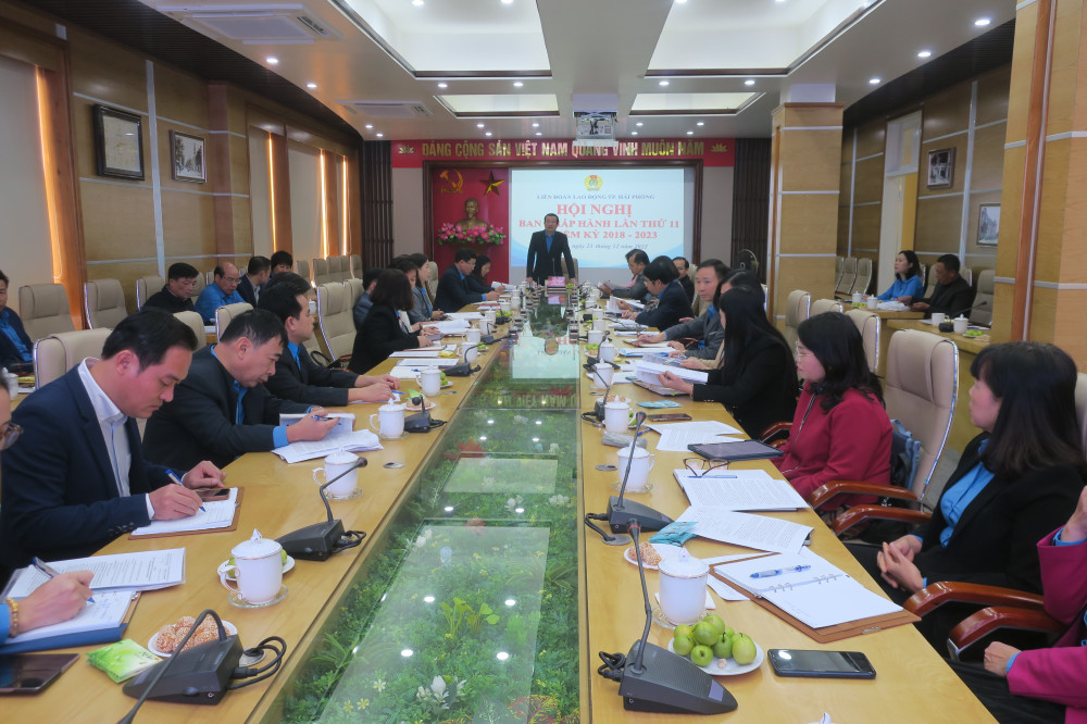 Sáng 23/12, Ban chấp hành Liên đoàn Lao động thành phố (khóa XIV) tổ chức Hội nghị lần thứ 11 tổng kết phong trào công nhân viên chức lao động và hoạt động công đoàn, công tác kiểm tra, giám sát năm 2022; phương hướng nhiệm vụ năm 2023. Đồng chí Nguyễn Anh Tuân, Chủ tịch Liên đoàn Lao động thành phố chủ trì Hội nghị.