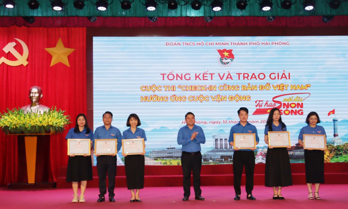 Ban Thường vụ Thành đoàn tổng kết và trao giải Cuộc thi ảnh “Check-in cùng bản đồ Việt Nam” bao gồm: 1 giải Nhất, 2 giải Nhì, 4 giải Ba, 6 giải Khuyến khích, 3 giải Lan tỏa dành cho tập thể có nhiều sản phẩm dự thi nhất và 3 giải Truyền thông dành cho các tác giả có sản phẩm được nhiều tương tác nhất trên nền tảng mạng xã hội Facebook và Tiktok Thành đoàn Hải Phòng.