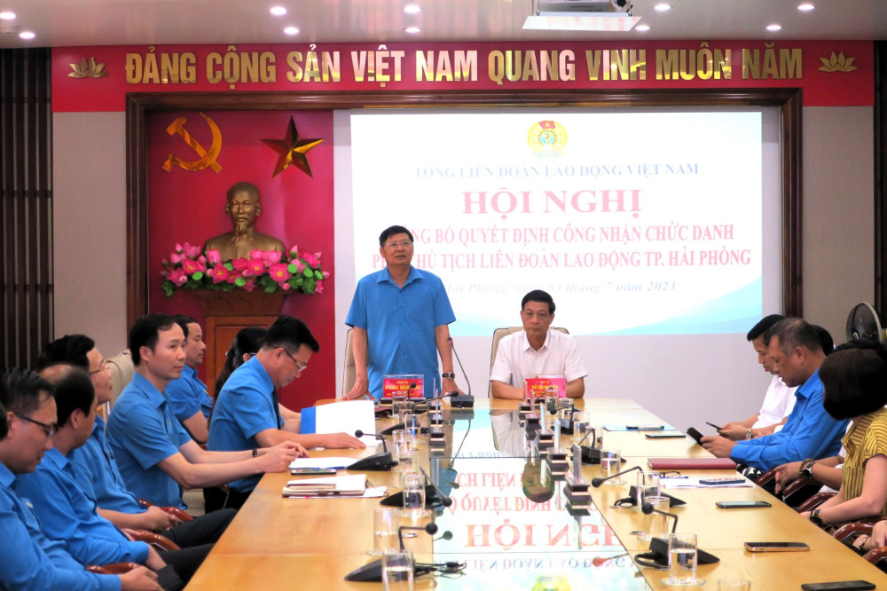 Chiều 3/7, tại trụ sở Liên đoàn Lao động thành phố, Tổng Liên đoàn Lao động Việt Nam tổ chức Hội nghị Công bố Quyết định công nhận chức danh Phó Chủ tịch Liên đoàn Lao động thành phố Hải Phòng.