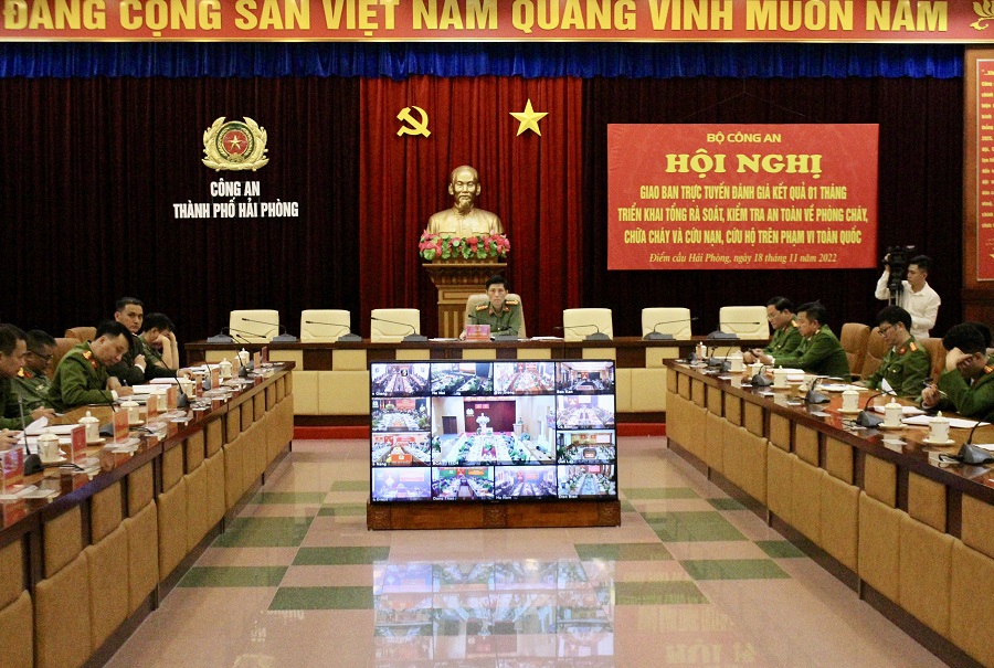 Chiều 18/11, Bộ Công an tổ chức Hội nghị giao ban trực tuyến với Công an các đơn vị, địa phương để sơ kết 1 tháng triển khai thực hiện Kế hoạch số 513 ngày 07/10/2022 của Bộ Công an về tổng rà soát, kiểm tra an toàn phòng cháy, chữa cháy và cứu nạn, cứu hộ (PCCC & CNCH) trên phạm vi toàn quốc. Thiếu tướng Nguyễn Văn Long, Thứ trưởng Bộ Công an chủ trì Hội nghị giao ban.