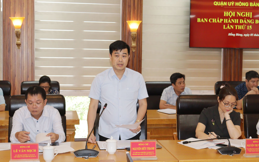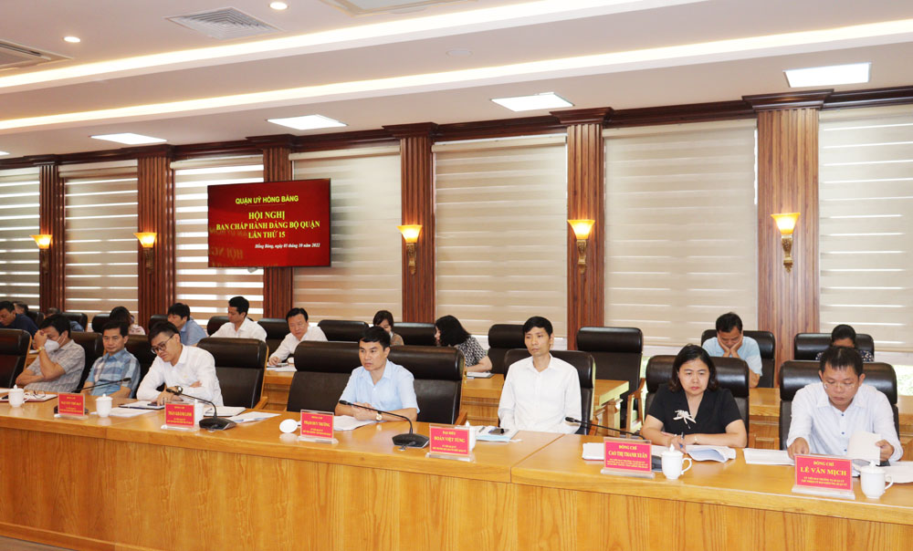 Sáng 5/10, Quận ủy Hồng Bàng tổ chức Hội nghị Ban Chấp hành Đảng bộ quận lần thứ 15 đánh giá tình hình, kết quả thực hiện nhiệm vụ 9 tháng đầu năm; nhiệm vụ trọng tâm công tác 3 tháng cuối năm 2022.