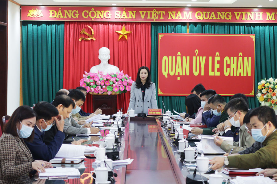 Sáng 15/12, Thường trực Quận ủy Lê Chân triệu tập Hội nghị Ban Thường vụ Quận ủy về tổng kết tình hình thực hiện nhiệm vụ năm 2022; triển khai phương hướng, nhiệm vụ năm 2023. Đồng chí Trần Thu Hương, Ủy viên Thành ủy, Bí thư Quận ủy chủ trì Hội nghị.