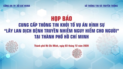 Trưa nay (3/12), tại Trung tâm báo chí TPHCM, Công an TPHCM và Sở TT-TT tổ chức họp báo thông tin về việc khởi tố vụ án hình sự “Lây lan dịch bệnh truyền nhiễm nguy hiểm cho người”.