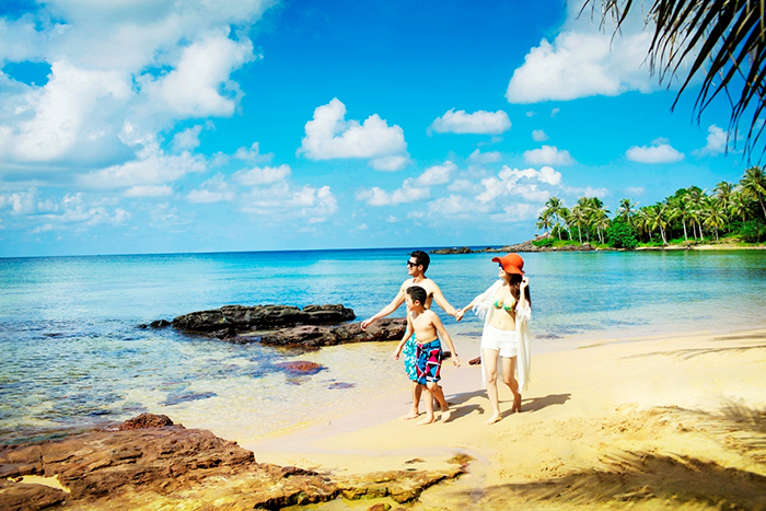 Đón đợi bạn sau những khung cảnh tuyệt mỹ từ cáp treo là cả một trời trải nghiệm thú vị. Một bãi tắm cát trắng nước trong như pha lê khiến bạn chỉ muốn lao mình vào làn nước mát, những rặng dừa xanh vi vút reo thôi thúc bạn nằm dài trên bãi cỏ xanh mịn và nhắm mắt tận hưởng những phút giây được tan hòa vào thiên nhiên.