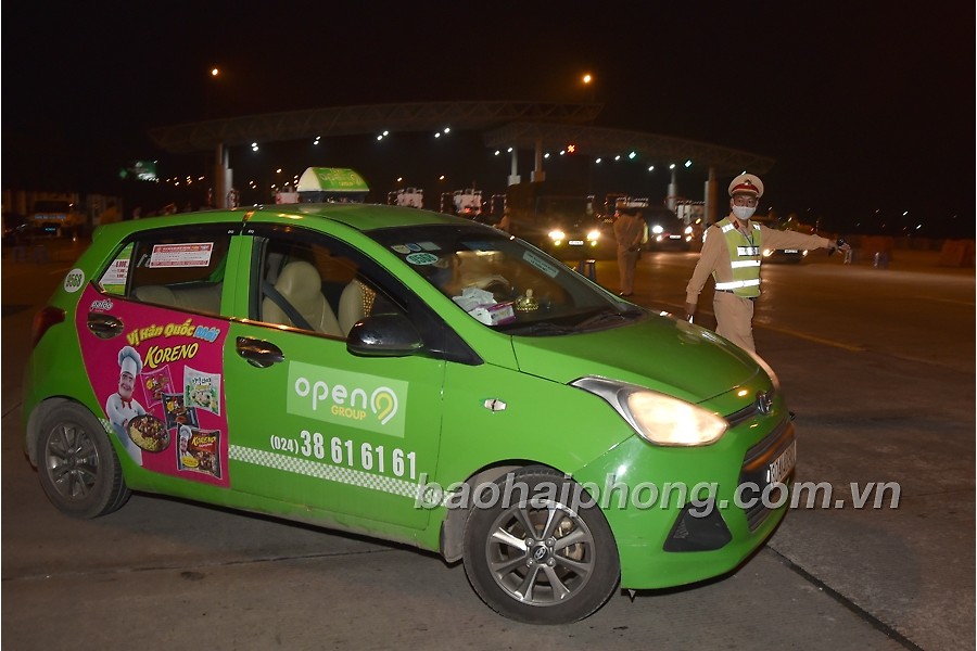 Lực lượng CSGT tại nút giao đường cao tốc- QL10 (phía huyện An Lão) yêu cầu tất cả lái xe taxi, xe chở khách mang biển kiểm soát địa phương khác không được vào thành phố.