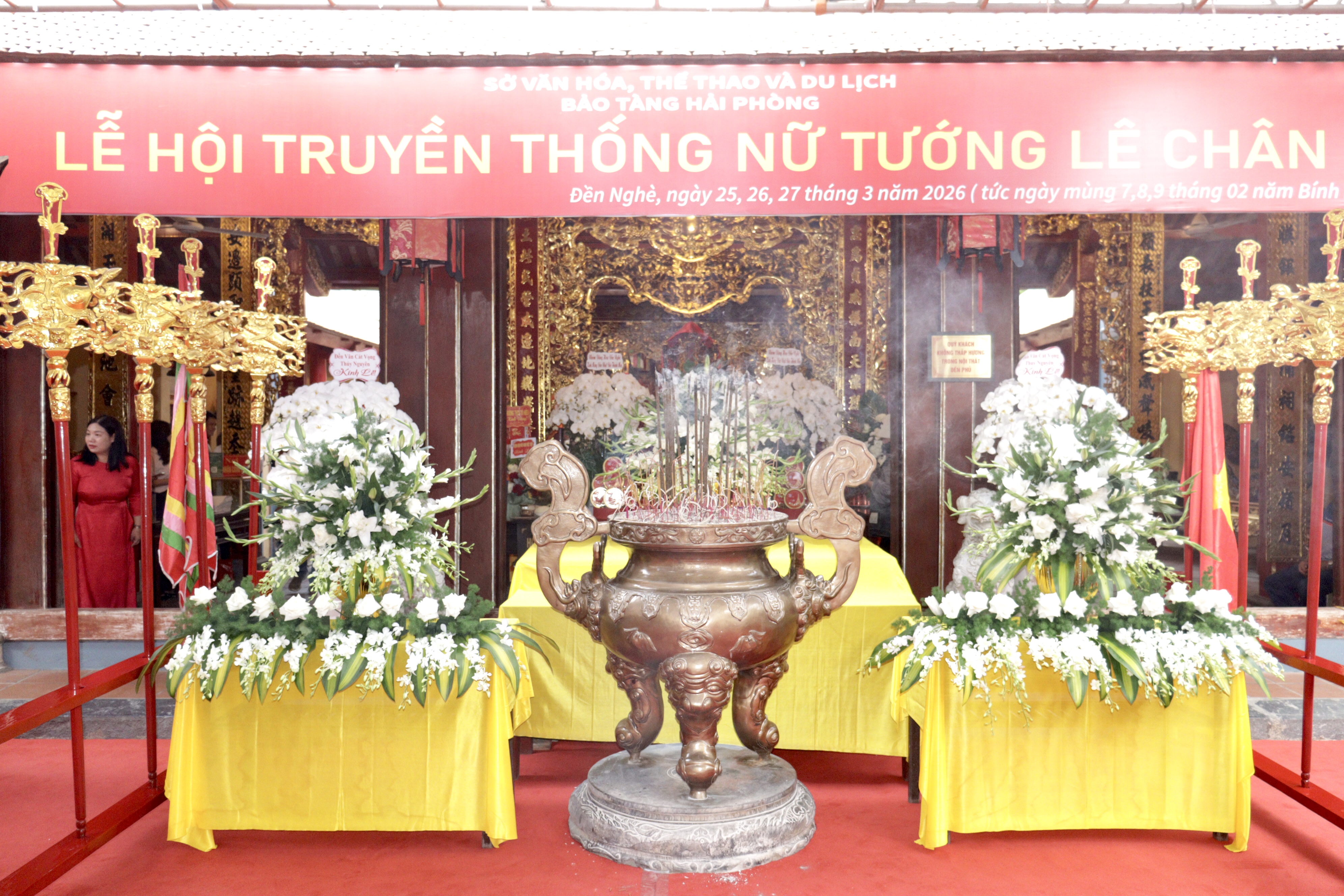 Sáng 25/3, phường Lê Chân tổ chức Lễ Cáo yết, dâng hương Lễ hội truyền thống Nữ tướng Lê Chân năm 2026. Tới dự có các đồng chí: Đỗ Mạnh Hiến, Phó Bí thư Thường trực Thành ủy; Nguyễn Quang Phúc, Ủy viên Ban Thường vụ Thành ủy, Trưởng Ban Tuyên giáo và Dân vận Thành uỷ; Nguyễn Minh Hùng, Phó Chủ tịch UBND thành phố cùng lãnh đạo một Sở, ngành, đơn vị, phường An Biên.
