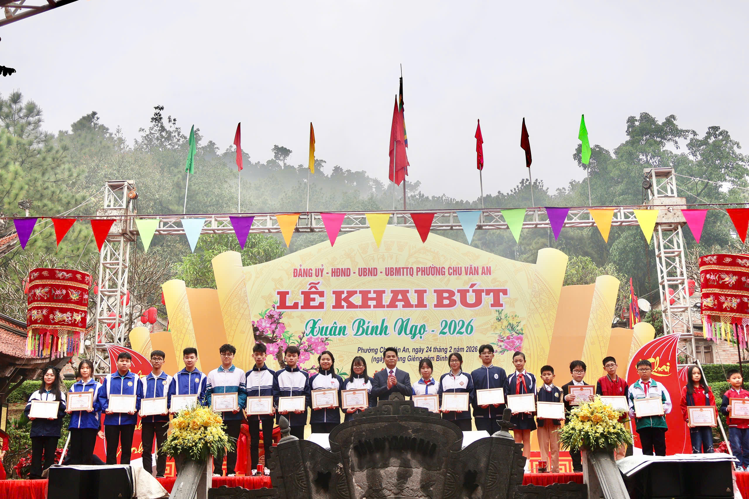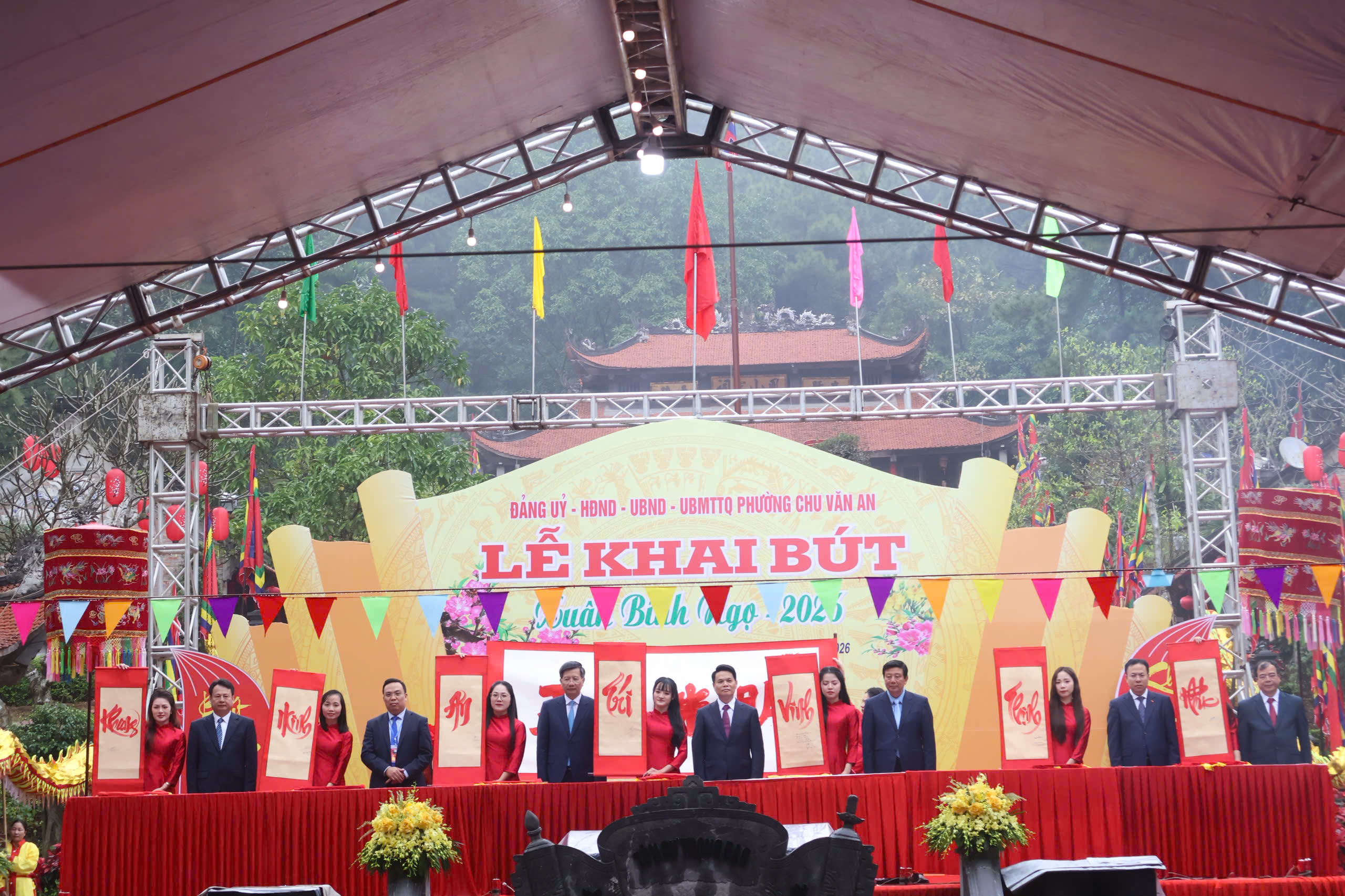 Sáng 24/2 (tức ngày 08 tháng Giêng năm Bính Ngọ), tại Đền thờ Vạn thế sư biểu Chu Văn An (Khu Di tích quốc gia Phượng Hoàng), Đảng uỷ – HĐND – UBND – Ủy ban MTTQ Việt Nam phường Chu Văn An tổ chức trang trọng Lễ Khai bút Xuân Bính Ngọ 2026.