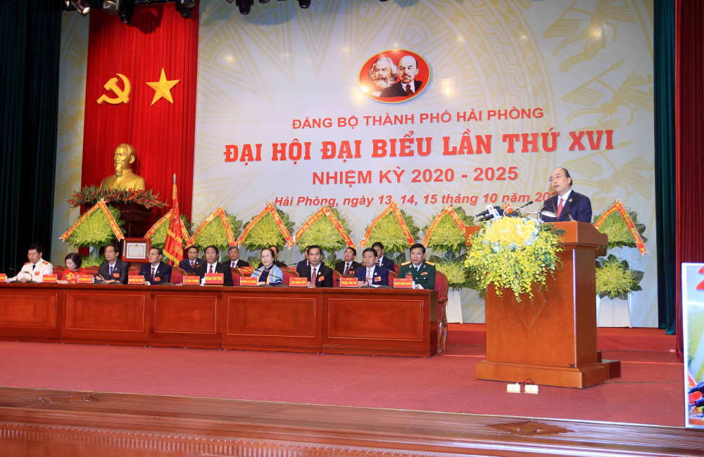 Phát biểu tại Đại hội đại biểu Đảng bộ thành phố lần thứ XVI (nhiệm kỳ 2020-2025) sáng nay 14/10, Thủ tướng Chính phủ Nguyễn Xuân Phúc bày tỏ vui mừng về dự Đại hội lần thứ XVI của Đảng bộ thành phố Hải Phòng.