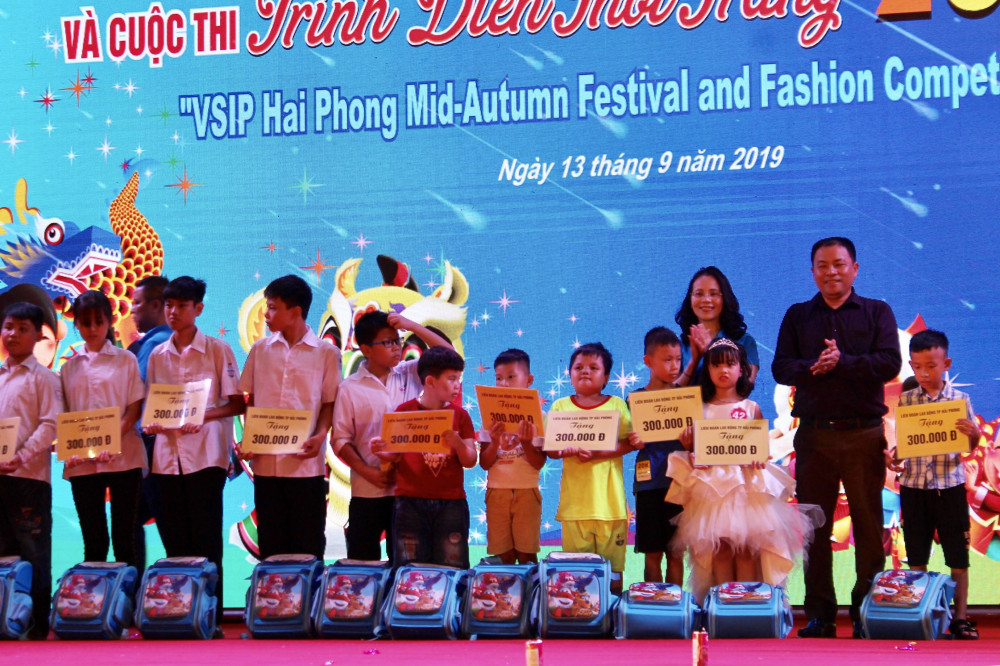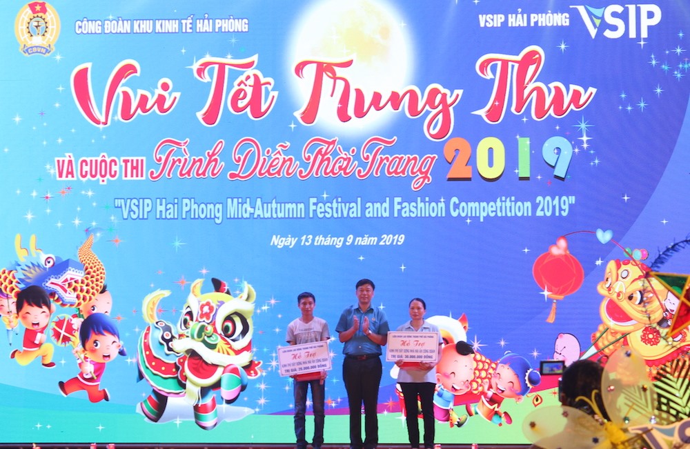 Tối 13-9, tại Khu công nghiệp VSIP, Công đoàn Khu kinh tế Hải Phòng phối hợp Công ty VSIP Hải Phòng tổ chức chương trình “Lễ hội Trăng rằm” cho con công nhân, lao động khu công nghiệp. Chương trình thu hút sự tham gia của gần 10 nghìn người là công nhân lao động và con công nhân đang làm việc tại Khu công nghiệp VSIP.