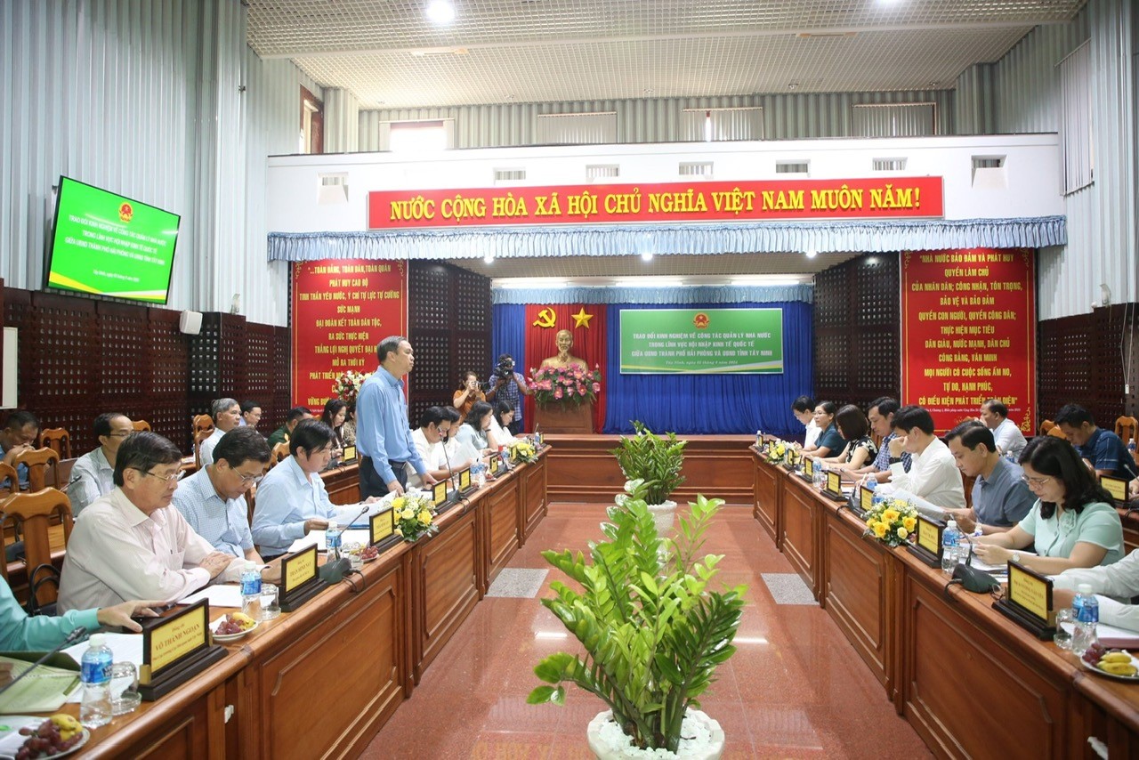 Ngày 02/8, tại Tây Ninh, Đoàn công tác của Ban Chỉ đạo Hội nhập quốc tế thành phố do Phó Chủ tịch UBND thành phố Hoàng Minh Cường, Trưởng Ban Chỉ đạo là Trưởng đoàn làm việc với UBND tỉnh Tây Ninh nhằm học hỏi, chia sẻ và trao đổi kinh nghiệm về các giải pháp trong công tác quản lý nhà nước lĩnh vực hội nhập kinh tế quốc tế.