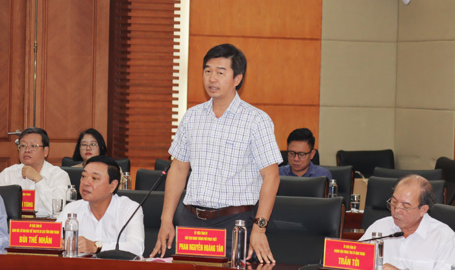 Phát biểu tại cuộc làm việc, đồng chí Nguyễn Hoài Anh, Phó Bí thư Thường trực Tỉnh ủy, Chủ tịch HĐND tỉnh Bình Thuận bày tỏ vui mừng trước sự phát triển mạnh mẽ của Hải Phòng trong những năm qua với những kết quả ấn tượng. Đồng thời cho biết, tỉnh Bình Thuận có vị trí địa lý thuận lợi, là cửa ngõ kết nối giao lưu kinh tế, văn hóa, chính trị và xã hội giữa các tỉnh vùng duyên hải Nam Trung Bộ với các tỉnh thuộc vùng kinh tế trọng điểm phía Nam. Qua 30 năm tái lập, tỉnh đã vượt khó, vươn lên và từng bước rút ngắn sự chênh lệch về trình độ phát triển với các tỉnh khu vực duyên hải miền Trung và Đông Nam bộ; tiềm lực kinh tế và kết cấu hạ tầng kinh tế bước đầu được củng cố, tạo tiền đề để phát triển mạnh mẽ trong những năm tới. Những bước phát triển trong thời gian qua, nổi bật là các nhân tố mới như du lịch, khai thác dầu khí ngoài khơi, năng lượng tái tạo, nông nghiệp công nghệ cao… đã và đang từng bước đưa tỉnh trở thành một cực phát triển mới của khu vực duyên hải Nam Trung bộ.