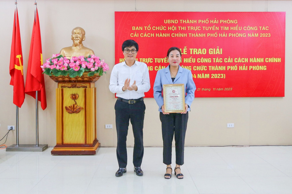 Kết quả Hội thi trực tuyến tìm hiểu công tác cải cách hành chính trong cán bộ, công chức thành phố Hải Phòng đợt 4 năm 2023. Giải Nhất thuộc về bà Lê Thị Vân, quận Hồng Bàng; Giải Nhì thuộc về bà Trịnh Thị Diễm, quận Hải An; bà Trịnh Thị Thu Trang, quận Hải An; và Giải Ba thuộc về bà Mai Thị Phương Linh, quận Ngô Quyền; bà Nguyễn Thị Huyền Thơ, quận Ngô Quyền; ông Nguyễn Văn Nhận, huyện Tiên Lãng.
