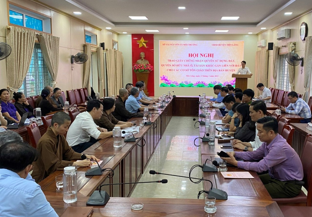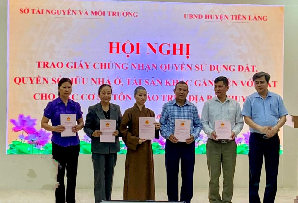 Chiều 14/4, Sở Tài nguyên và Môi trường thành phố phối hợp với UBND huyện Tiên Lãng tổ chức Hội nghị trao Giấy chứng nhận Quyền sử dụng đất, Quyền sở hữu nhà ở, tài sản khác gắn liền với đất cho các cơ sở tôn giáo trên địa bàn huyện.