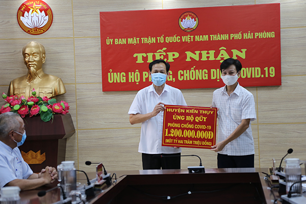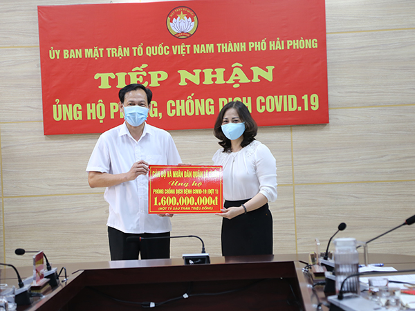 Các cơ quan, doanh nghiệp và nhân dân đã ủng hộ kinh phí phòng, chống dịch COVID-19 đợt 7 gồm: Chi hội TM Đài Loan tại Hải Phòng: 200 triệu đồng; Cán bộ và Nhân dân quận Lê Chân: 1 tỷ 600 triệu đồng; Huyện Kiến Thụy: 1 tỷ 200 triệu đồng; Cán bộ và Nhân dân quận Dương Kinh: 500 triệu đồng